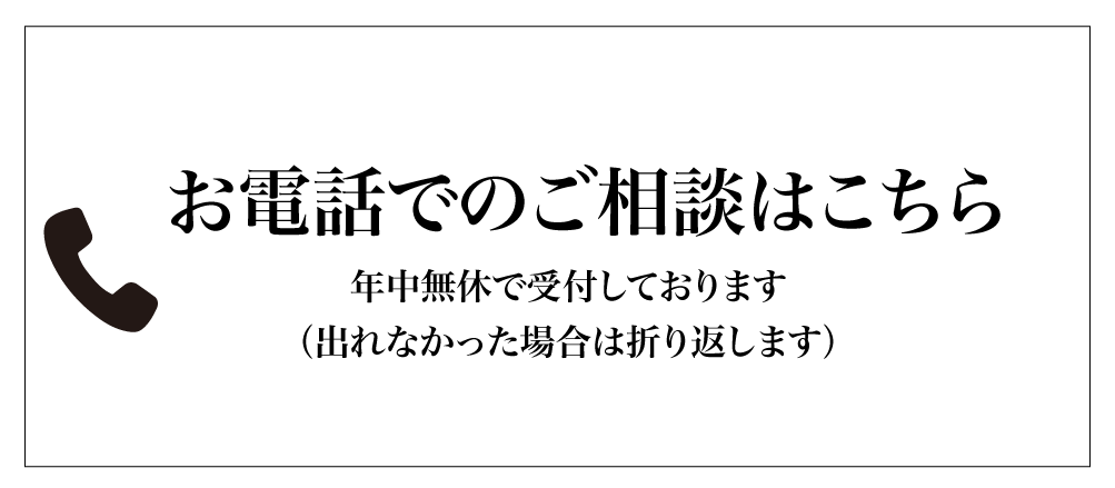 年中無休にて受付しております(もし電話に出れなかった場合はすぐに折り返します)